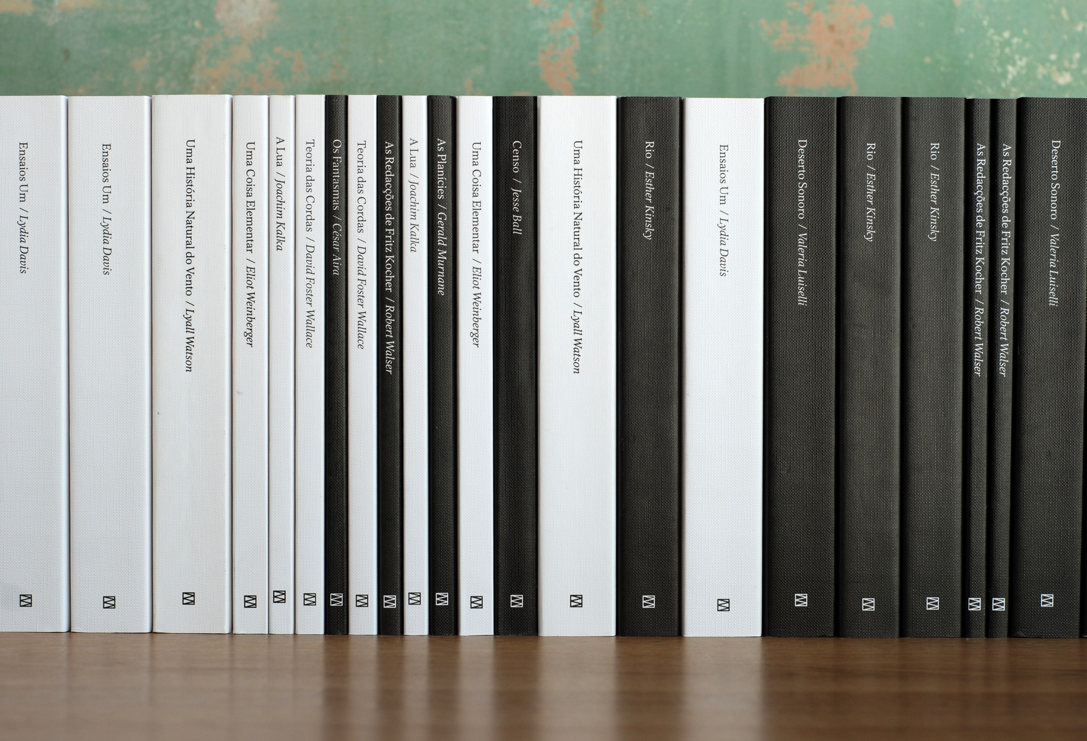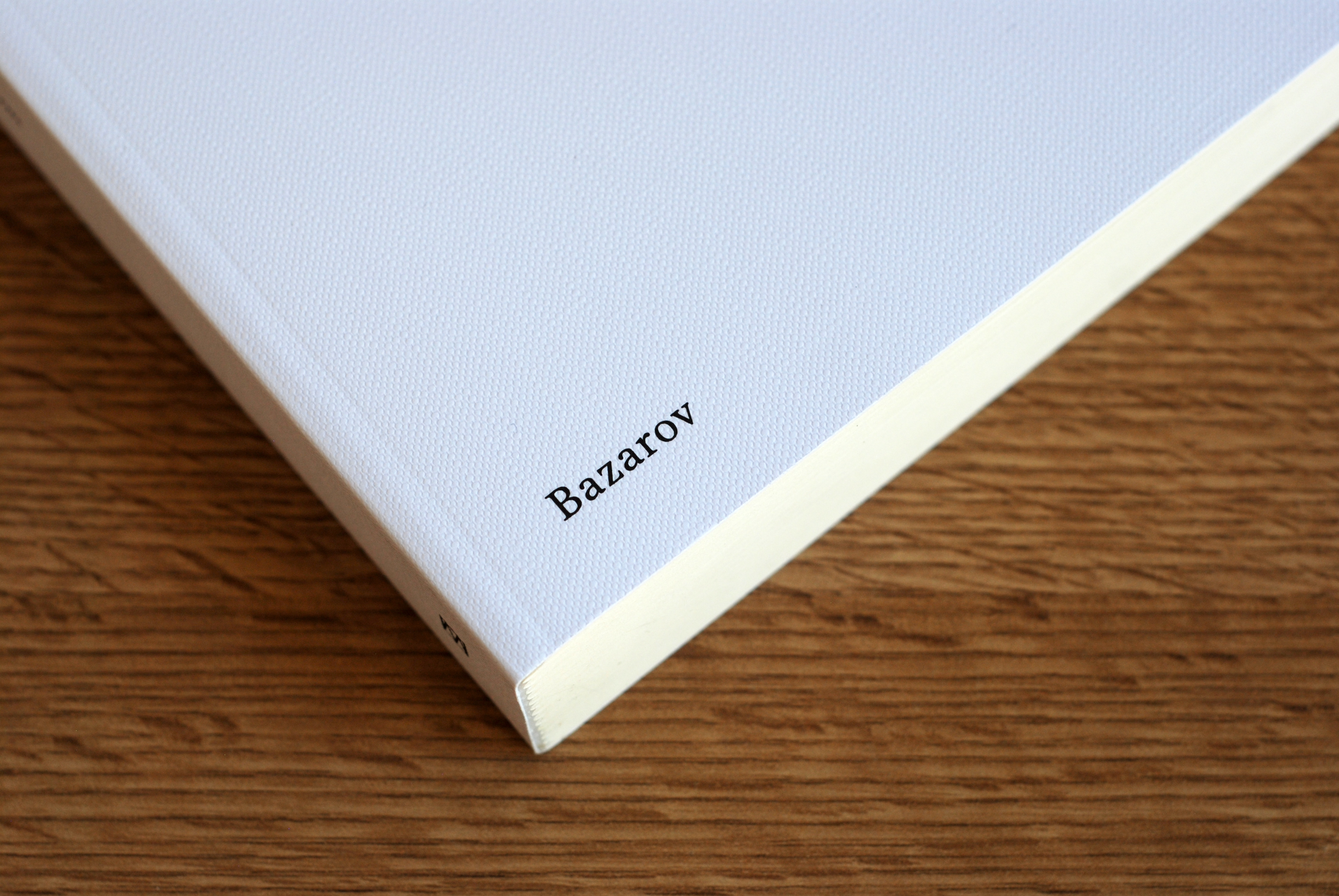 Design is never simply about ink on paper – about graphic marks (what is printed). It must also be about what the ink is printed onto, so the materiality of the covers was always a central component of the design. For the first series of 12 books we have used an embossed paper – Brossulin XT by Fedrigoni – which has a texture reminiscent of canvas covers. This is not immediately evident on seeing photos of the books but our concern was to readers and to attend to the act of holding the books in one’s hand. Collaboration is important in any design project and the pagination of the books, which vary in the nature of their prose, is worked in close collaboration with the Bazarov’s experienced editor Guilherme Pires.