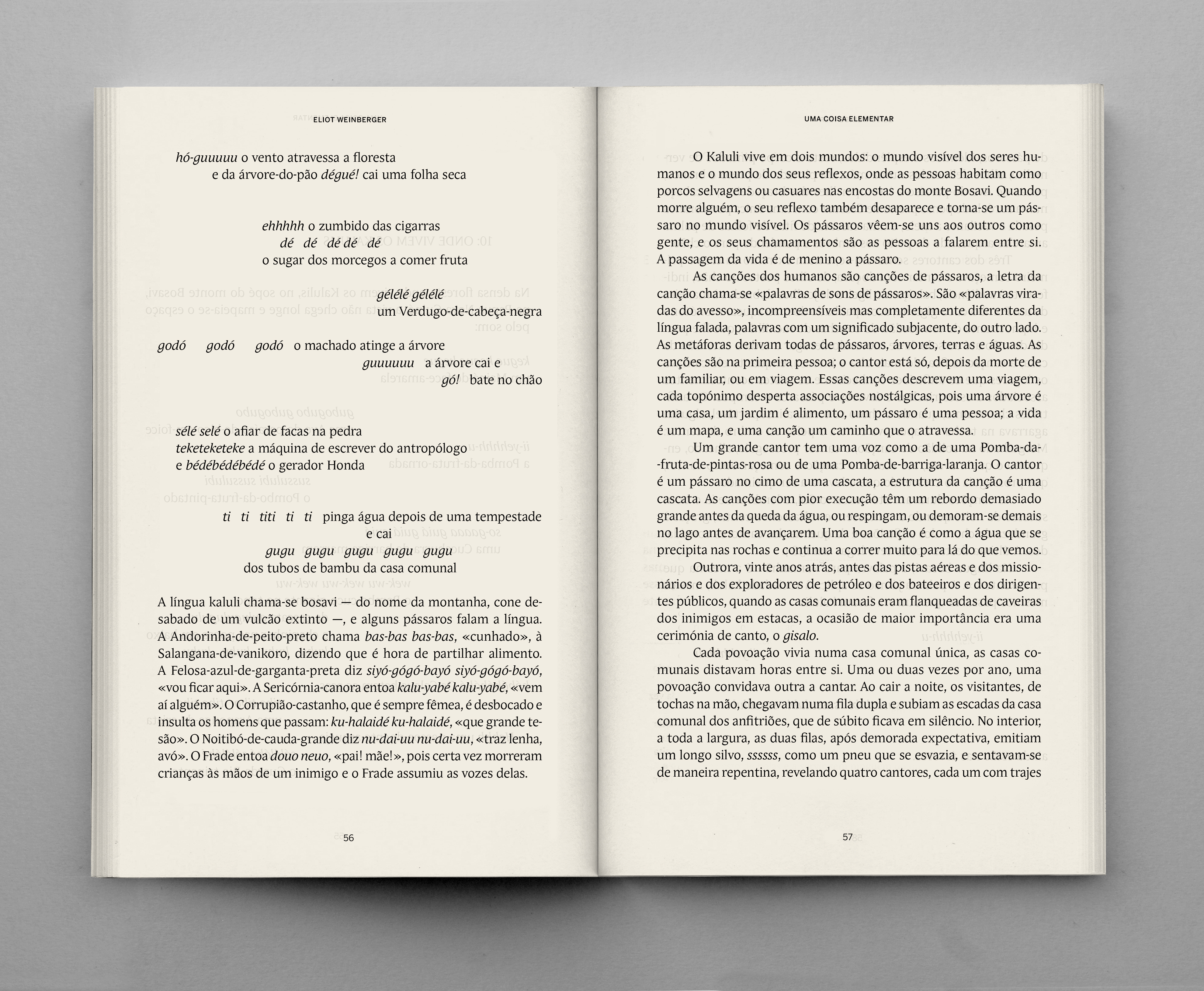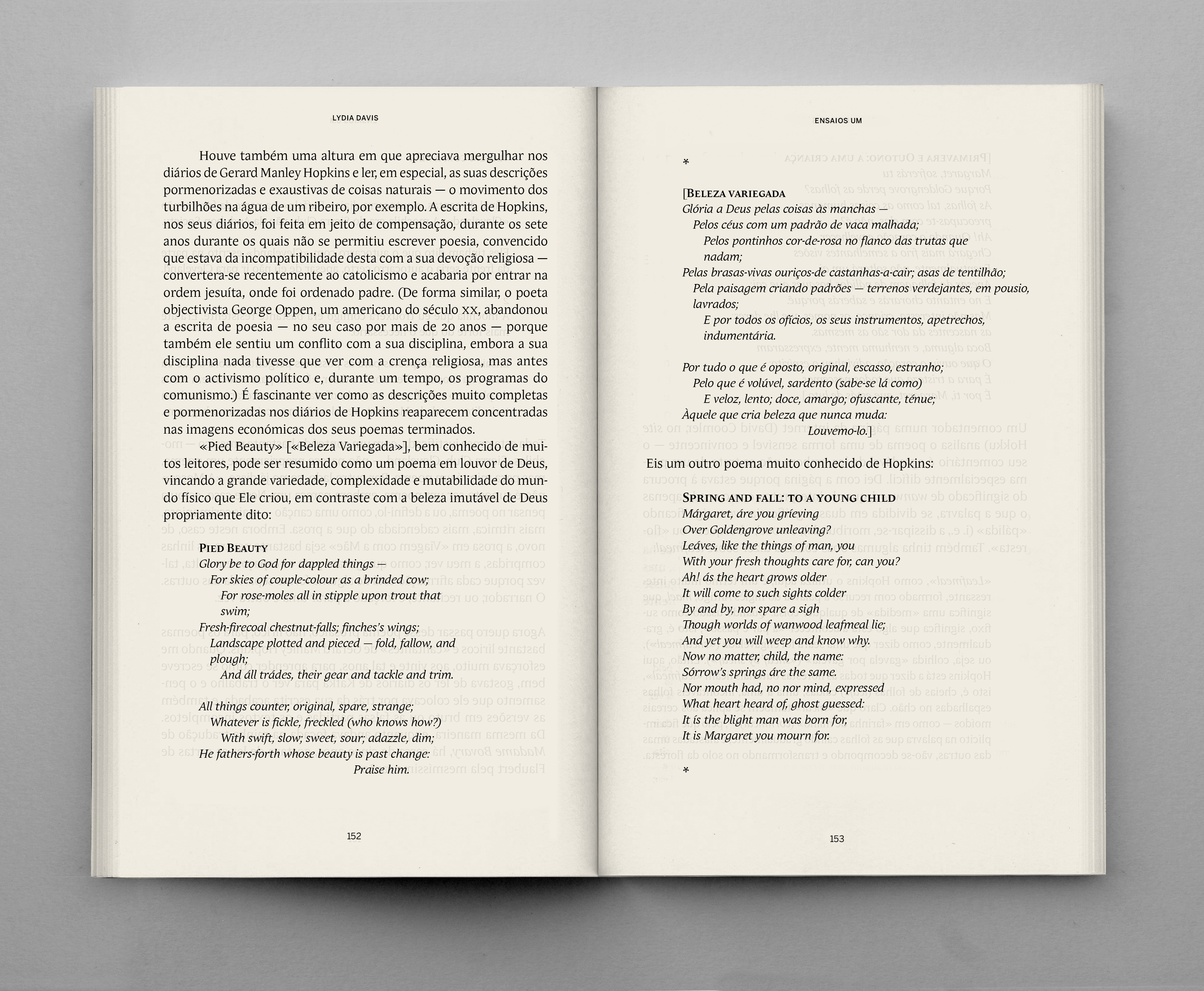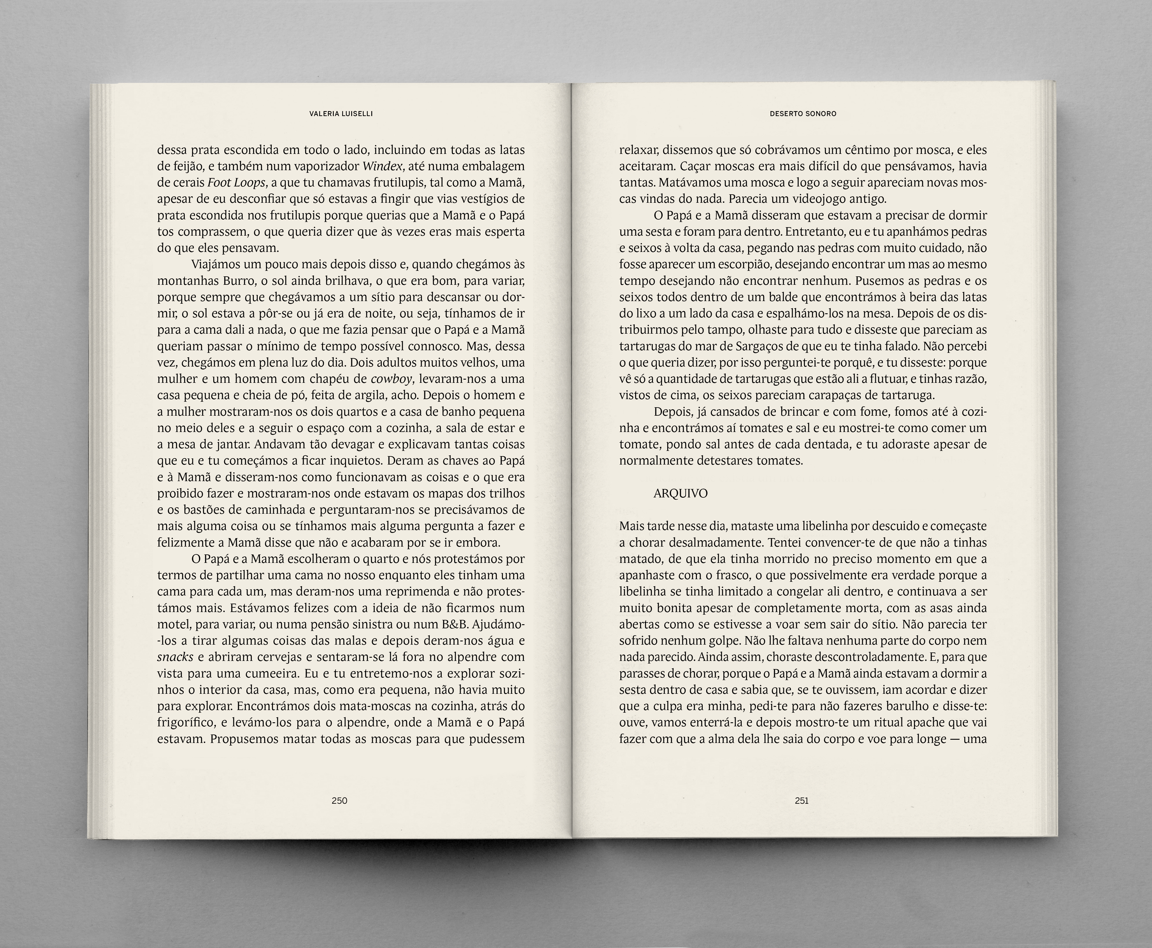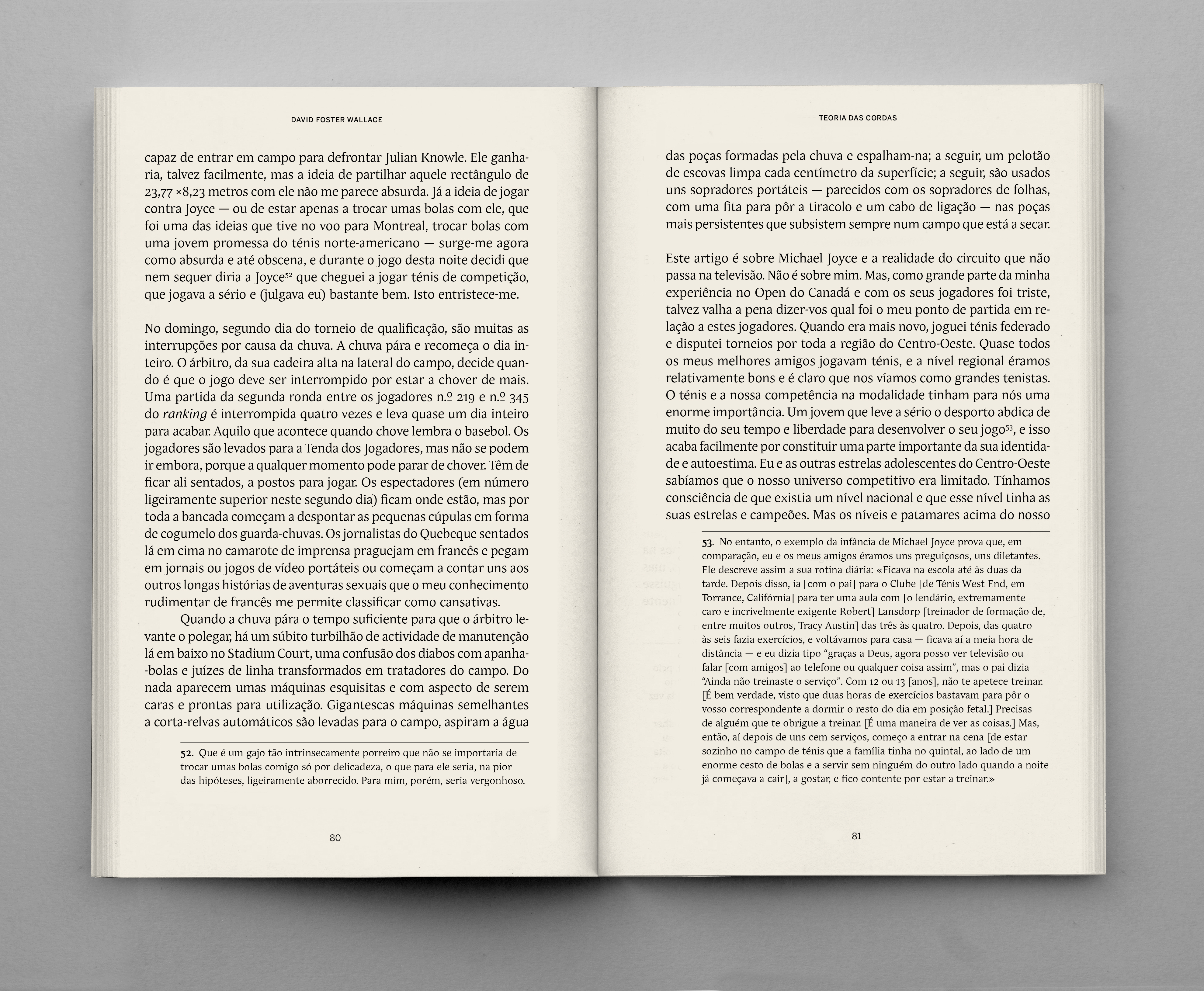 The owner and founder of Bazarov, Ricardo Costa, a lover of literature, was keen to pursue a type-only system for the covers. We put forward a very simple graphic system of black covers for fiction series and white covers for the non-fiction. After various typeface searches and typographic explorations we chose the lovely typeface Lector from type foundry Forgotten Shapes for the covers. For the interior pages we settled on Andulka from the Storm Type Foundry.