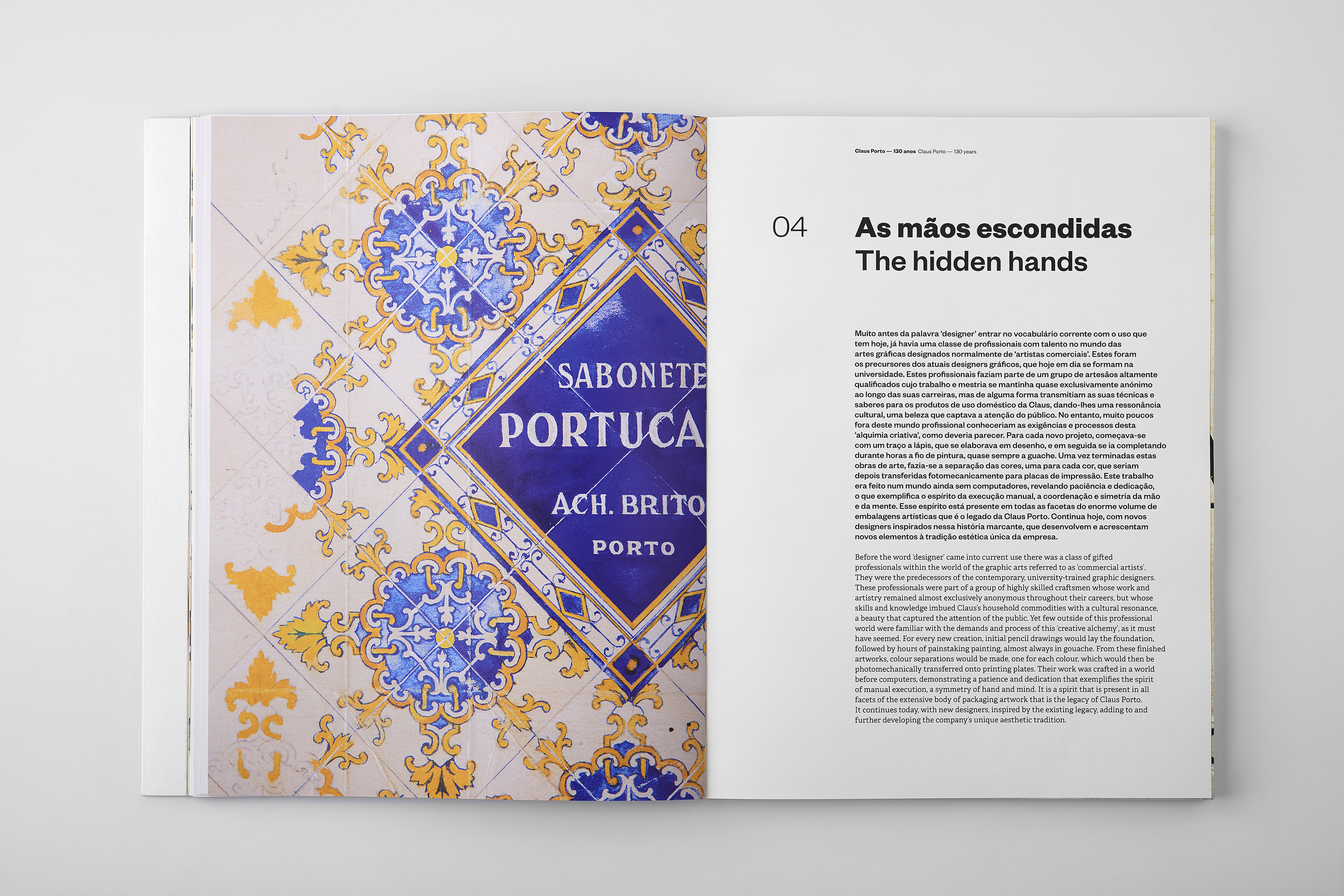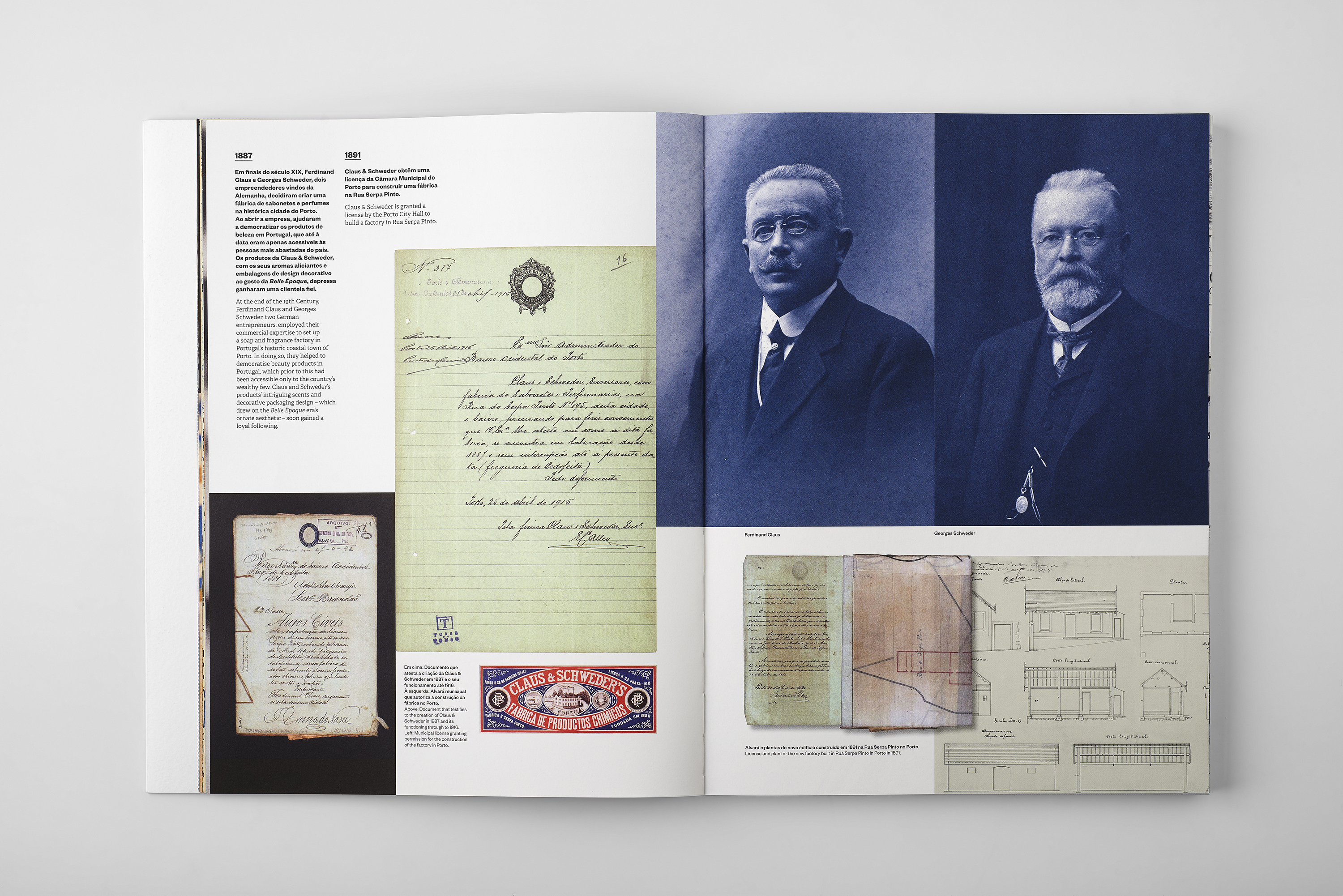 After having consulted the company’s visual arched in a way – through the use of various paper stocks and page formats – to reflect and celebrate the rich archive – a real graphic treasure house – I proposed that the book should be constructed as a visual narrative, constructvisual history of the company. Ten chapters, each beginning with a small text, take the reader through a visual journey that recounts the company’s history, development and productive methods. The book is available in a choice of two covers. It was launched in Paris at the end of October 2017, and later at the Claus Porto flagship store in Porto.