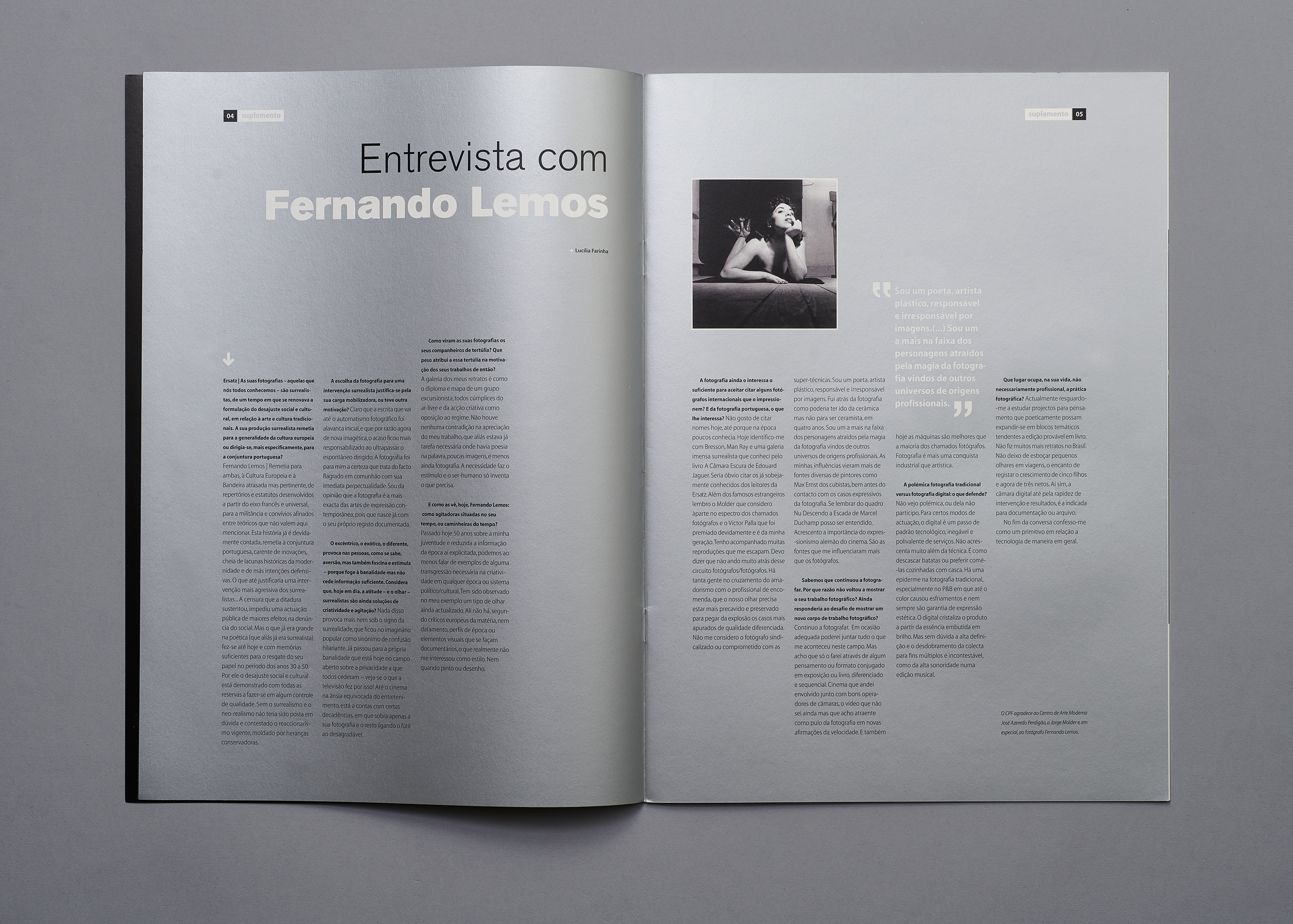 Sadly only 12 issues of this award winning journal were produced in total between 1999 and 2004 – including 3 double issues and 3 supplements. Devised and designed as the Journal of the Portuguese Centre for Photography, it contained national and international articles, historical and theoretical essays, exhibition coverage, editorials, reviews and news.
