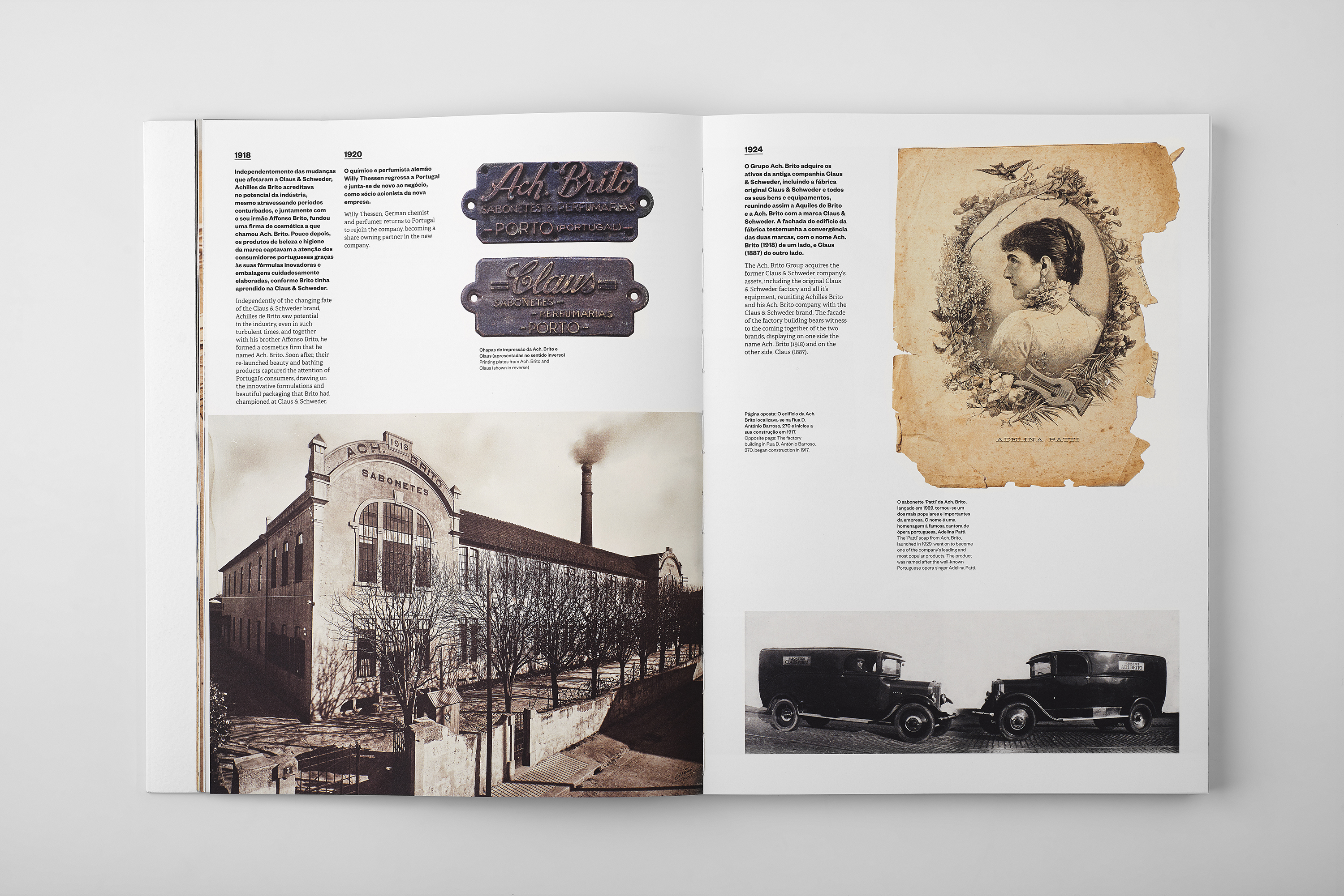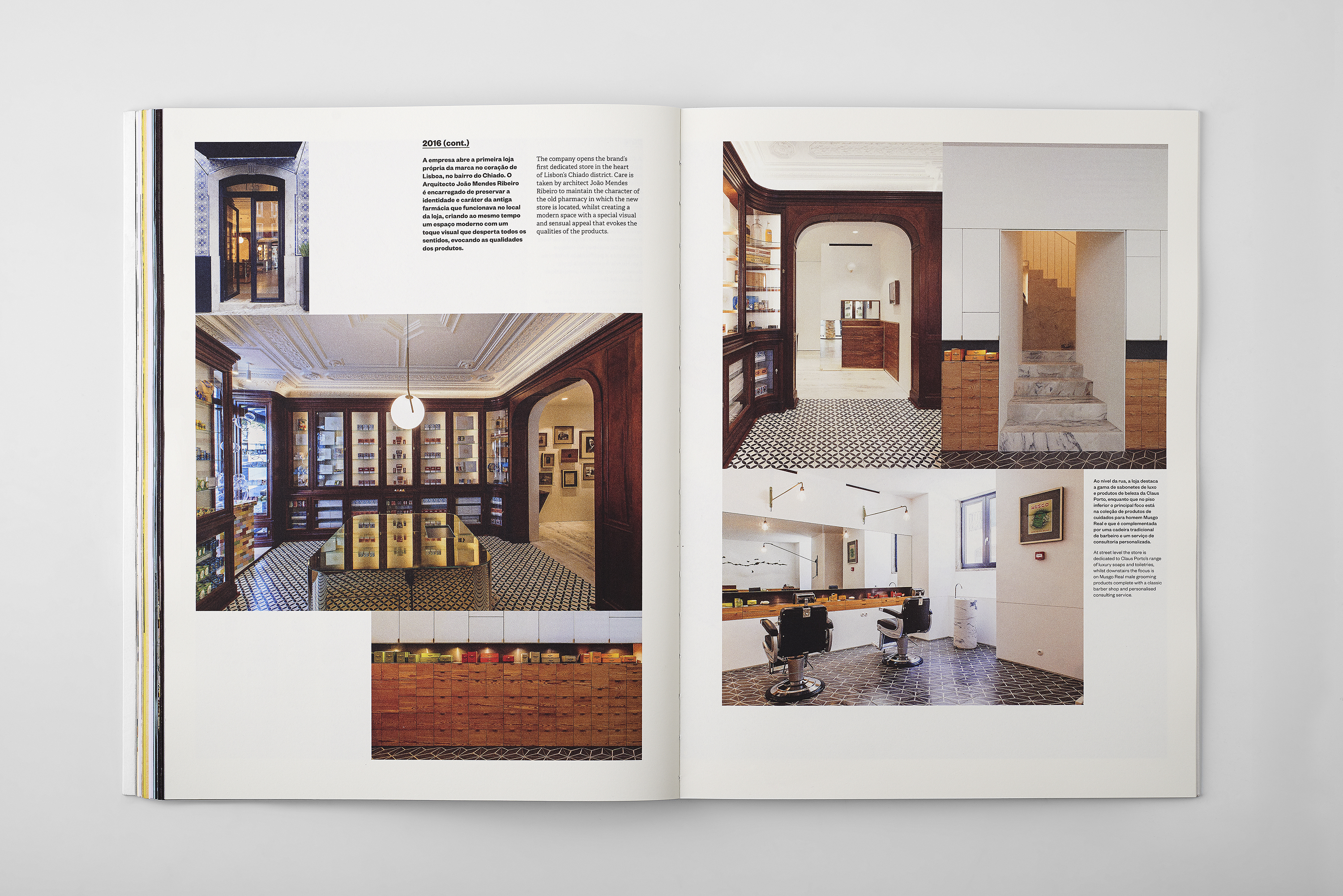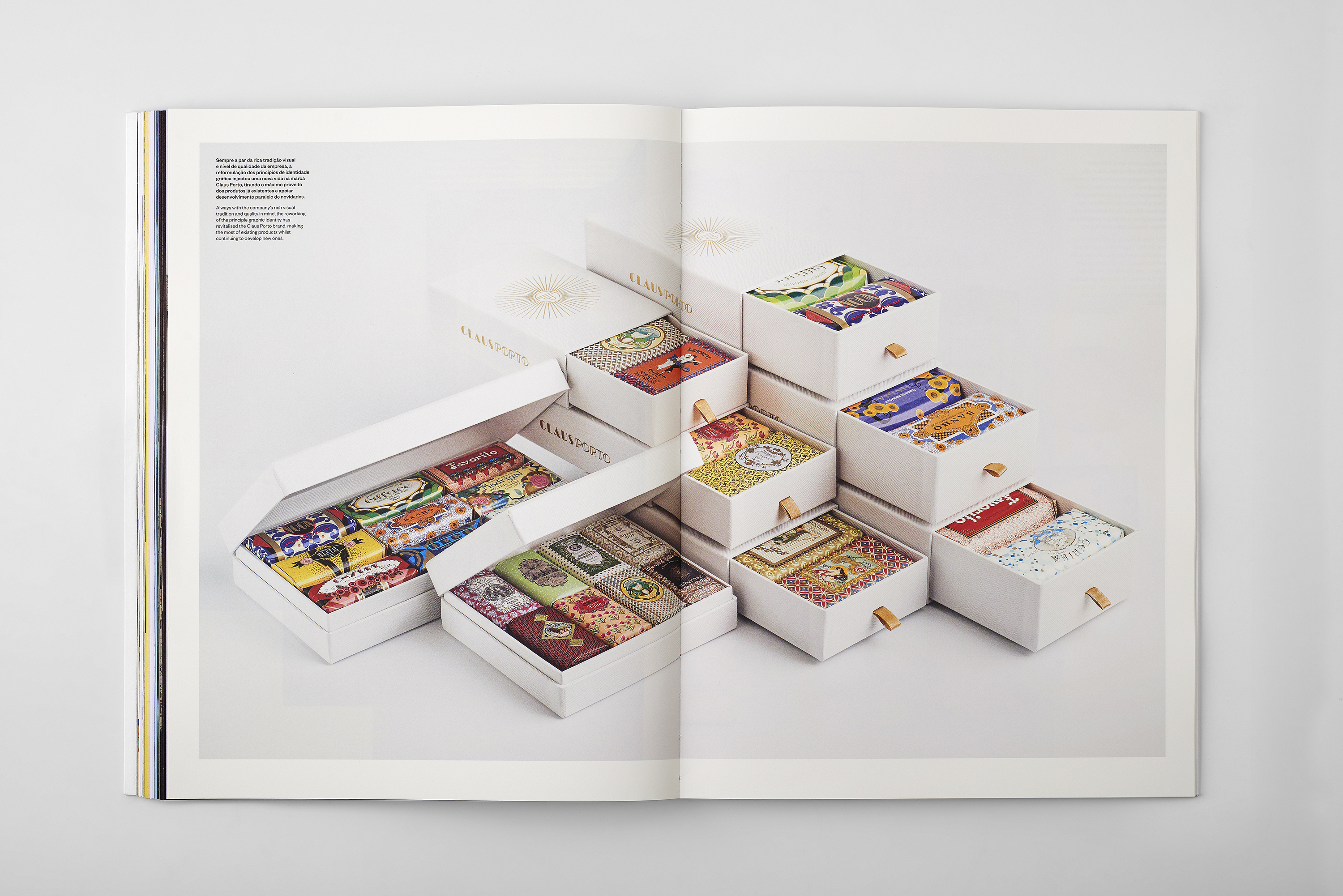 After having consulted the company’s visual arched in a way – through the use of various paper stocks and page formats – to reflect and celebrate the rich archive – a real graphic treasure house – I proposed that the book should be constructed as a visual narrative, constructvisual history of the company. Ten chapters, each beginning with a small text, take the reader through a visual journey that recounts the company’s history, development and productive methods. The book is available in a choice of two covers. It was launched in Paris at the end of October 2017, and later at the Claus Porto flagship store in Porto.