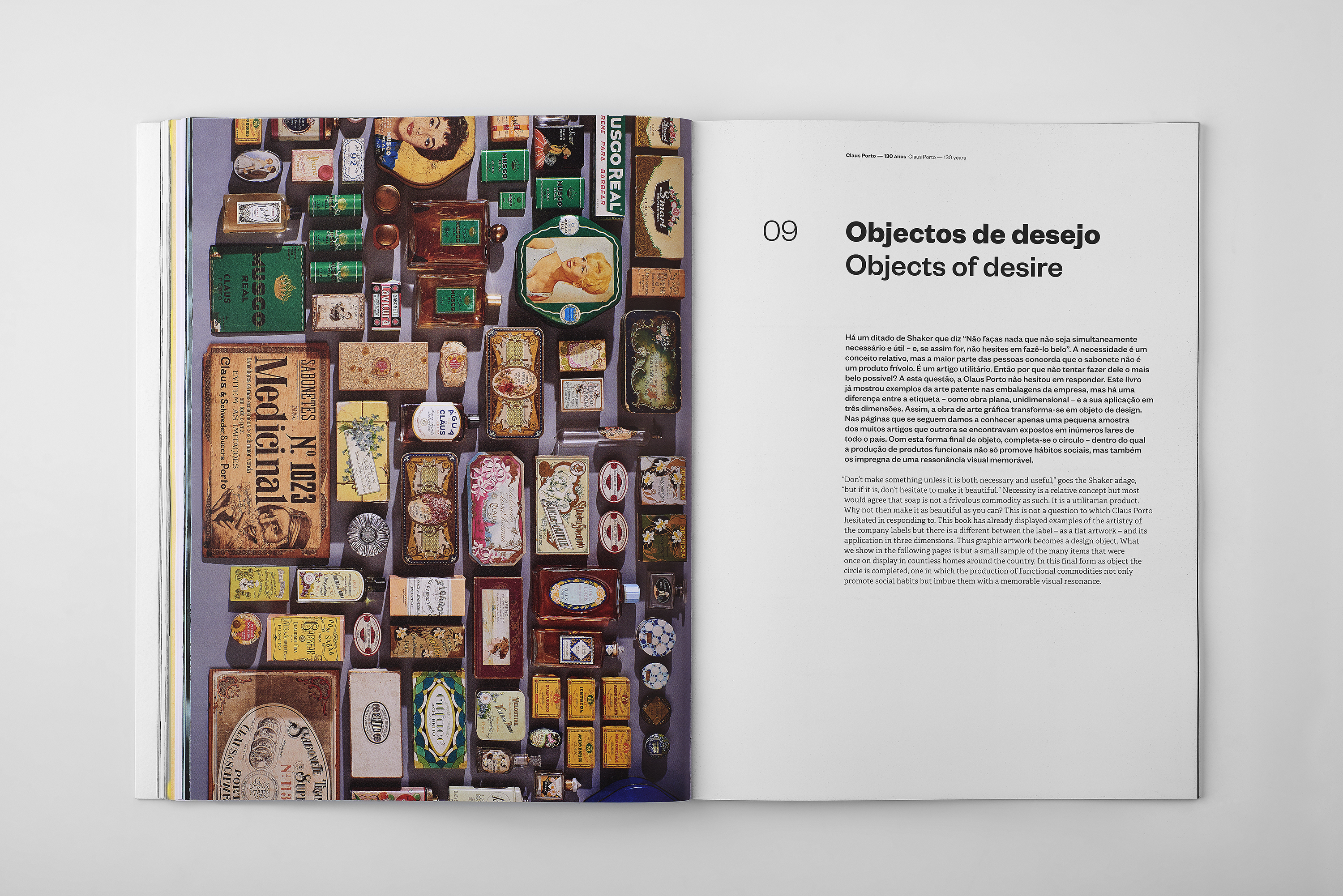 To help me in this task I invited talented long-time design collaborator Rita Carvalho to join me. Principle photography was by Nuno Moreira. Printing was done by Gráfica Maiadouro who deserve a special thanks for their commitment and the multiple machine tests that we did in order to get the best results from the use of the non-coated paper stocks we chose and the special binding techniques. A special thanks to everyone at Claus Porto for their openness and trust.