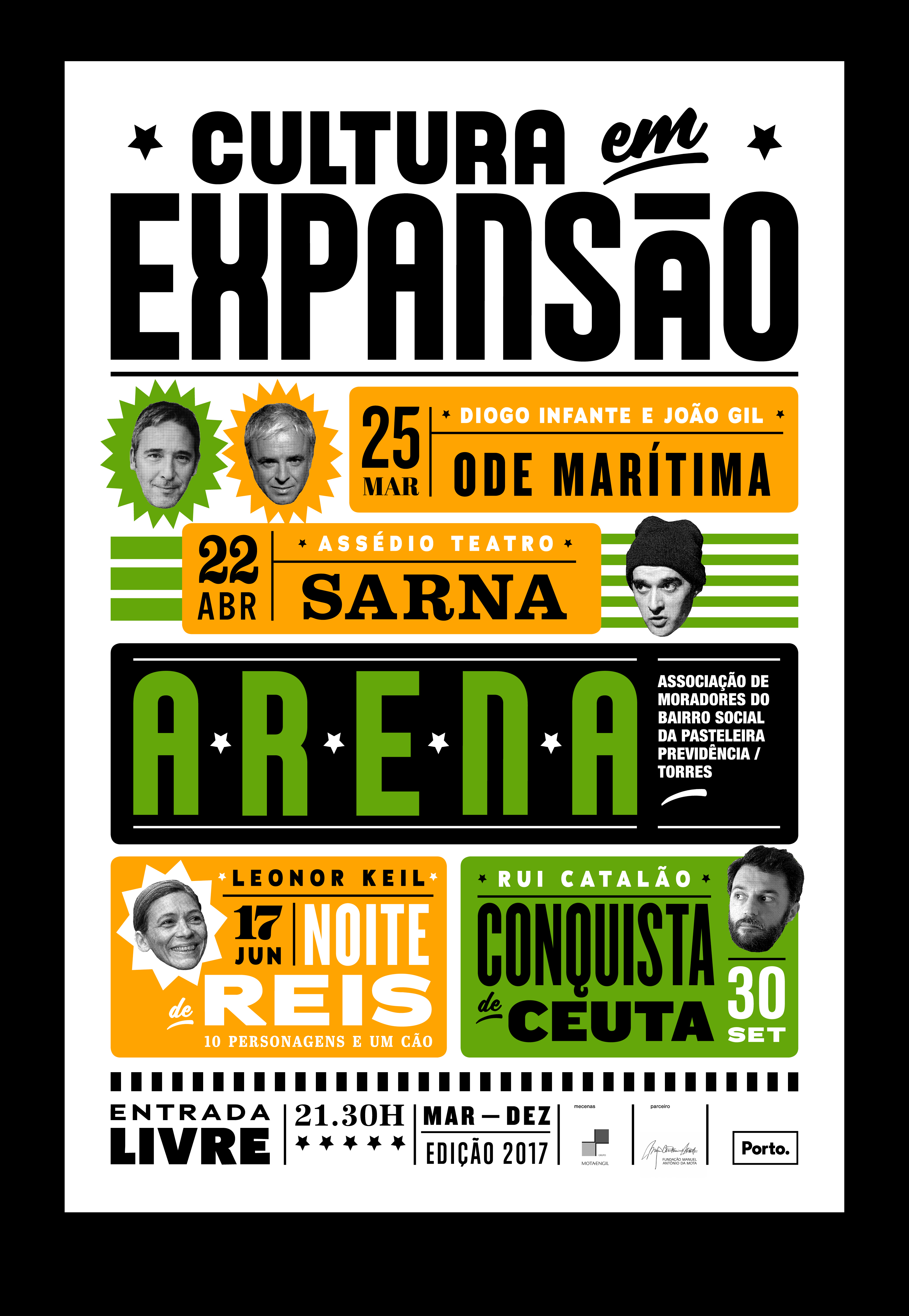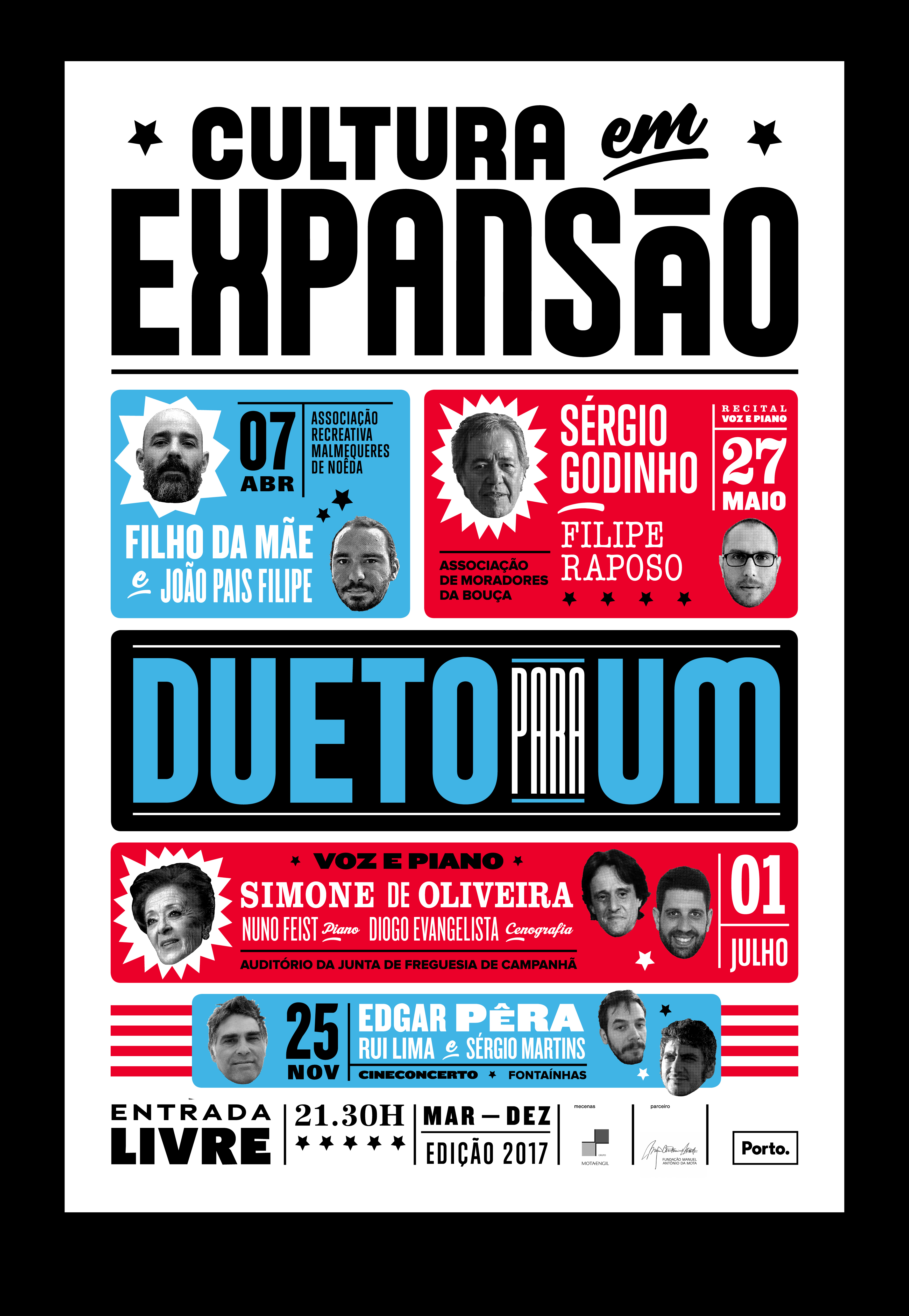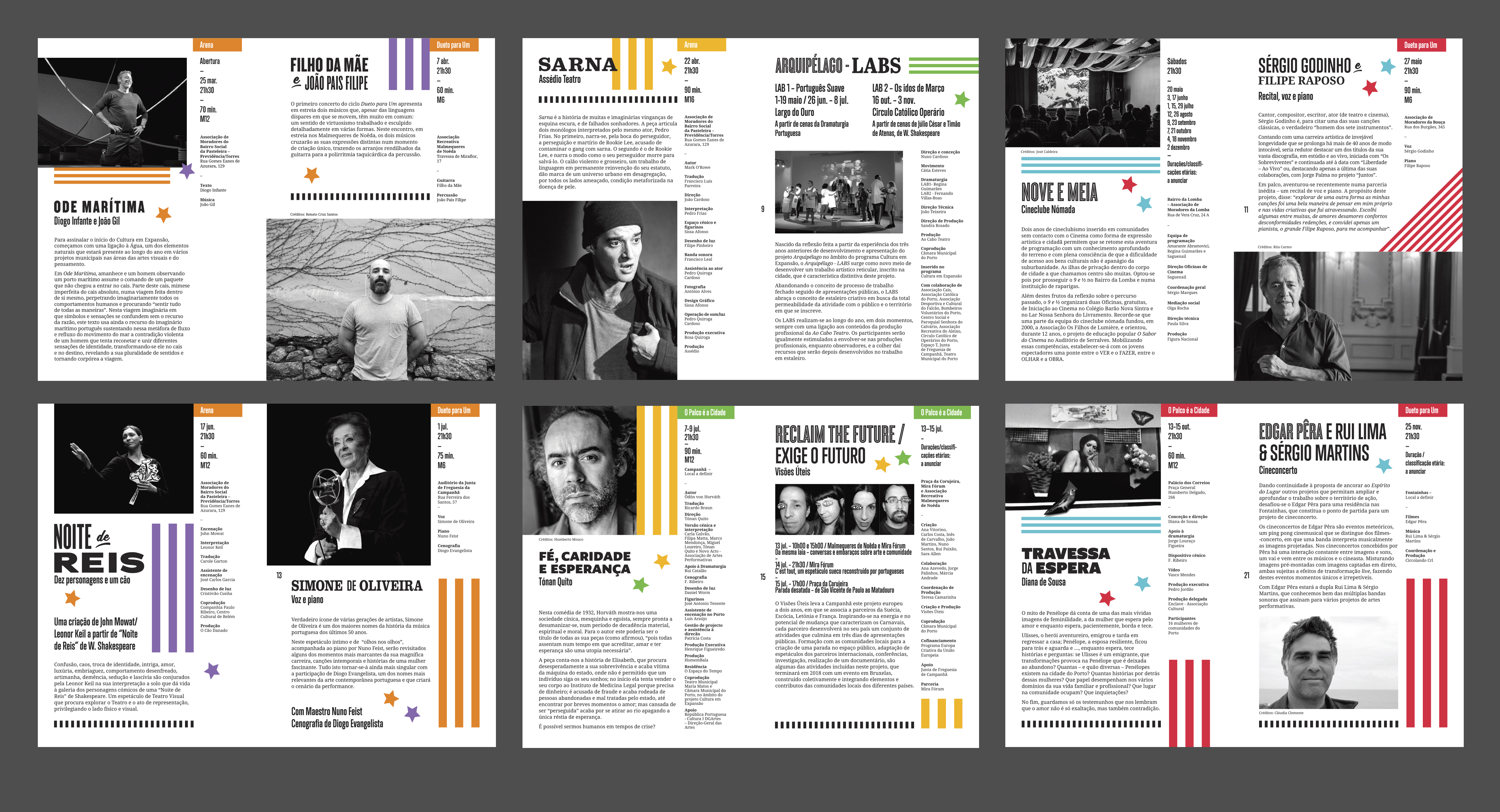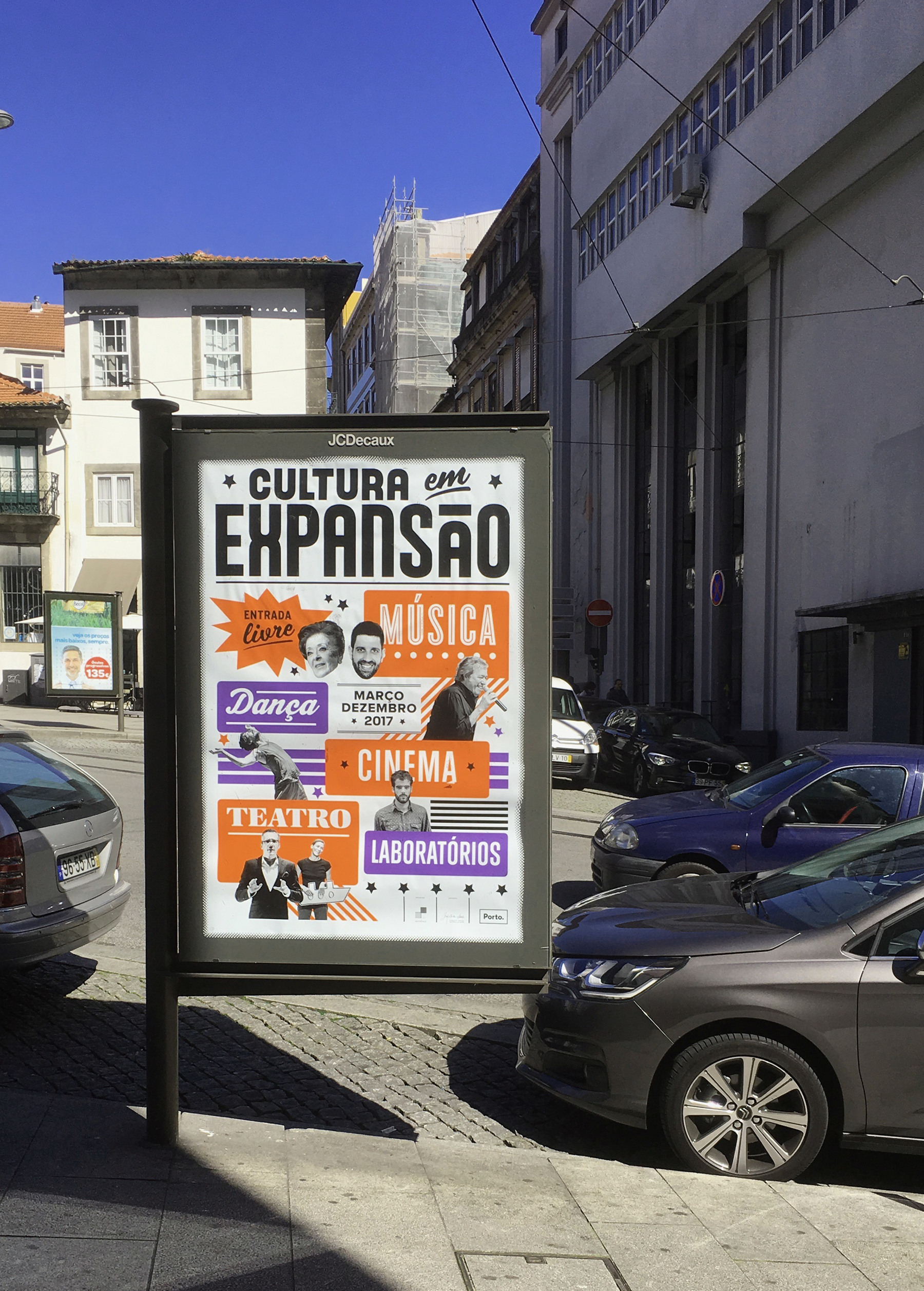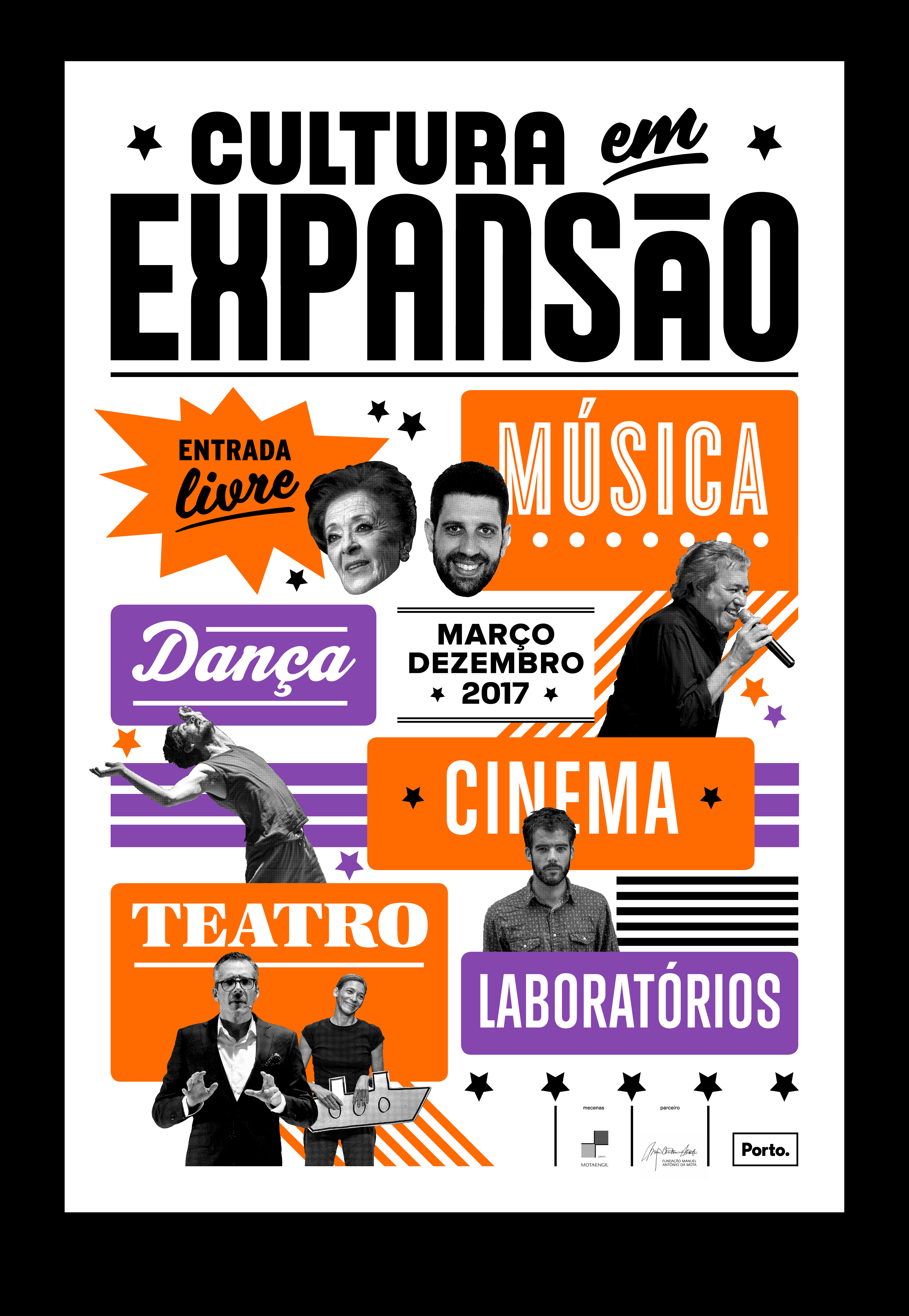 The Porto City Hall invited the studio to design the publicity materials for one of the biggest annual cultural events in city, an initiative entitled 'Cultura em Expansão' (Culture in Expansion), a series of events and concerts – music, theatre, dance, cinema, workshops – that take place during the year all over the city mostly in locations outside of established venues (housing associations for example). The materials included three principle posters and a 24 page brochure.