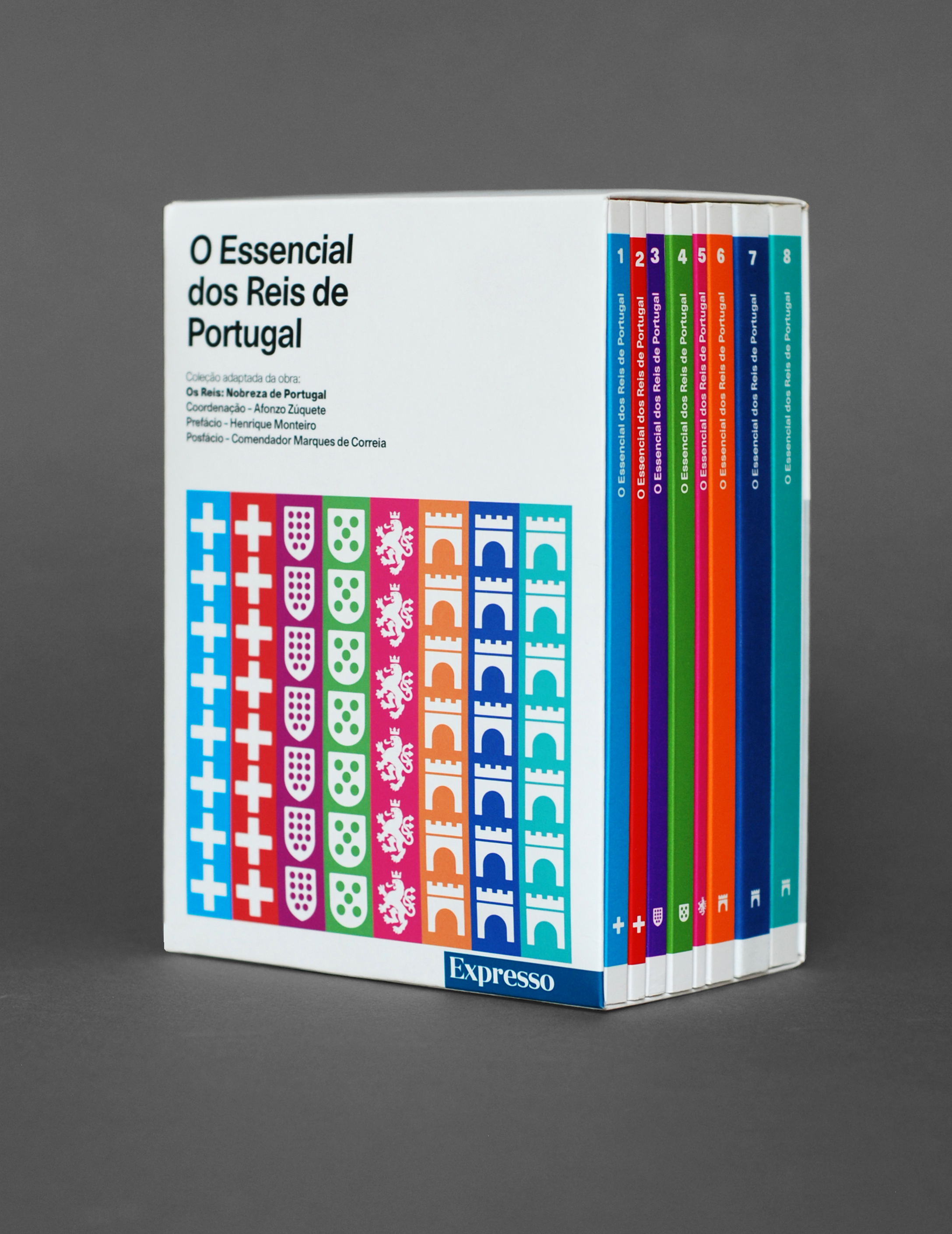 Contacted in 2018 by the national newspaper group Expresso, I was invited to design a series of book covers – eight in total – for a series on the history of the Portuguese Monarchy. The series is entitled ‘O Essential dos Reis de Portugal’, in which one volume was made available to the public with the newspaper over a period of eight weeks. An accompanying slip case (archive box) to hold the collection was also designed. The final design was the result of a quite profound compromise on my behalf and is not my preferred choice of the designs submitted.