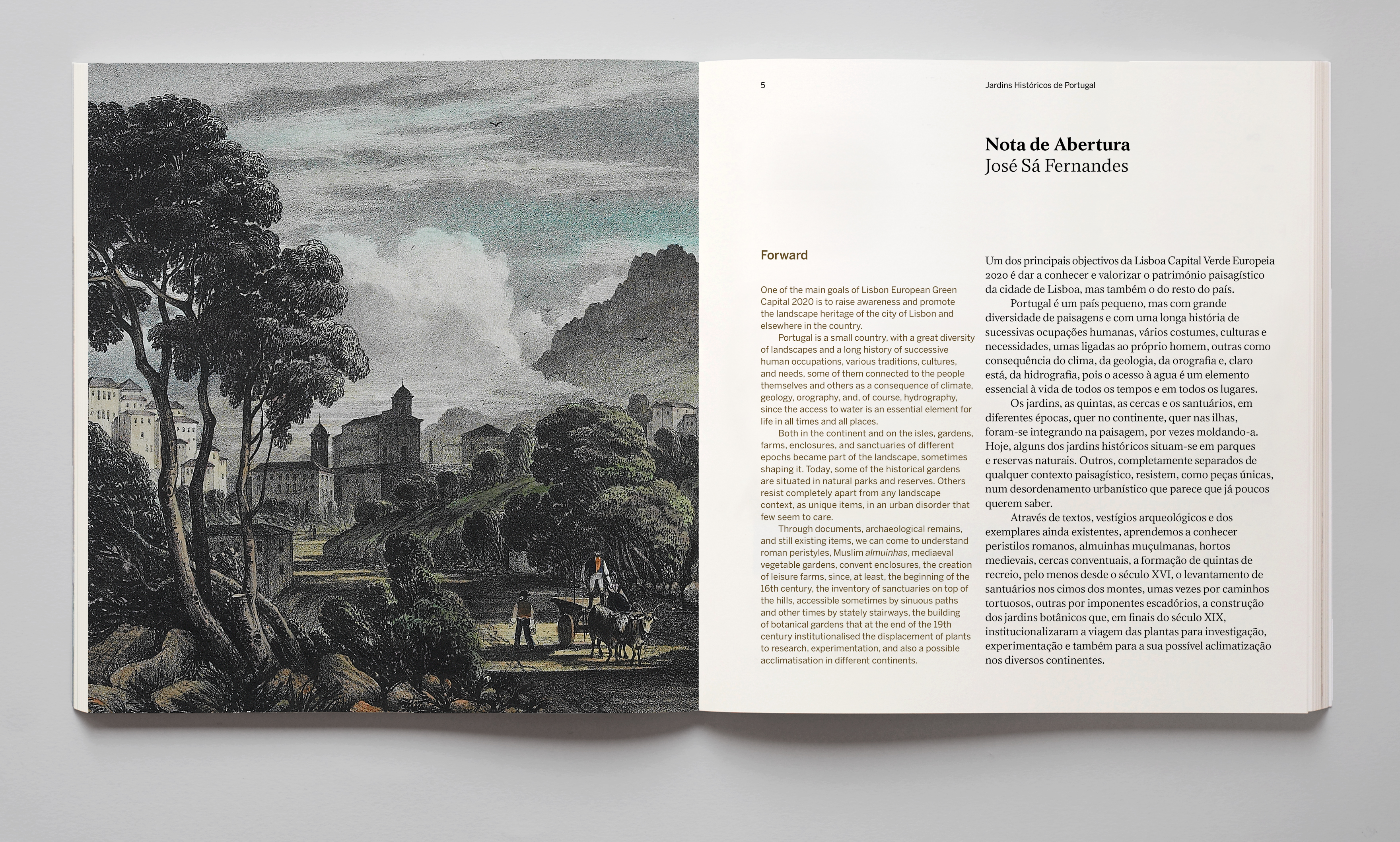 Commissioned by the Portuguese Association of Historic Gardens, in partnership with Lisbon City Council (within the context of Lisbon European Green Capital 2020), and the National Library of Portugal. This 262 page book, produced to accompany the exhibition ‘Historic Gardens of Portugal: Memory and Future’, offers both a historical overview and a current guide of public and private gardens in Portugal.