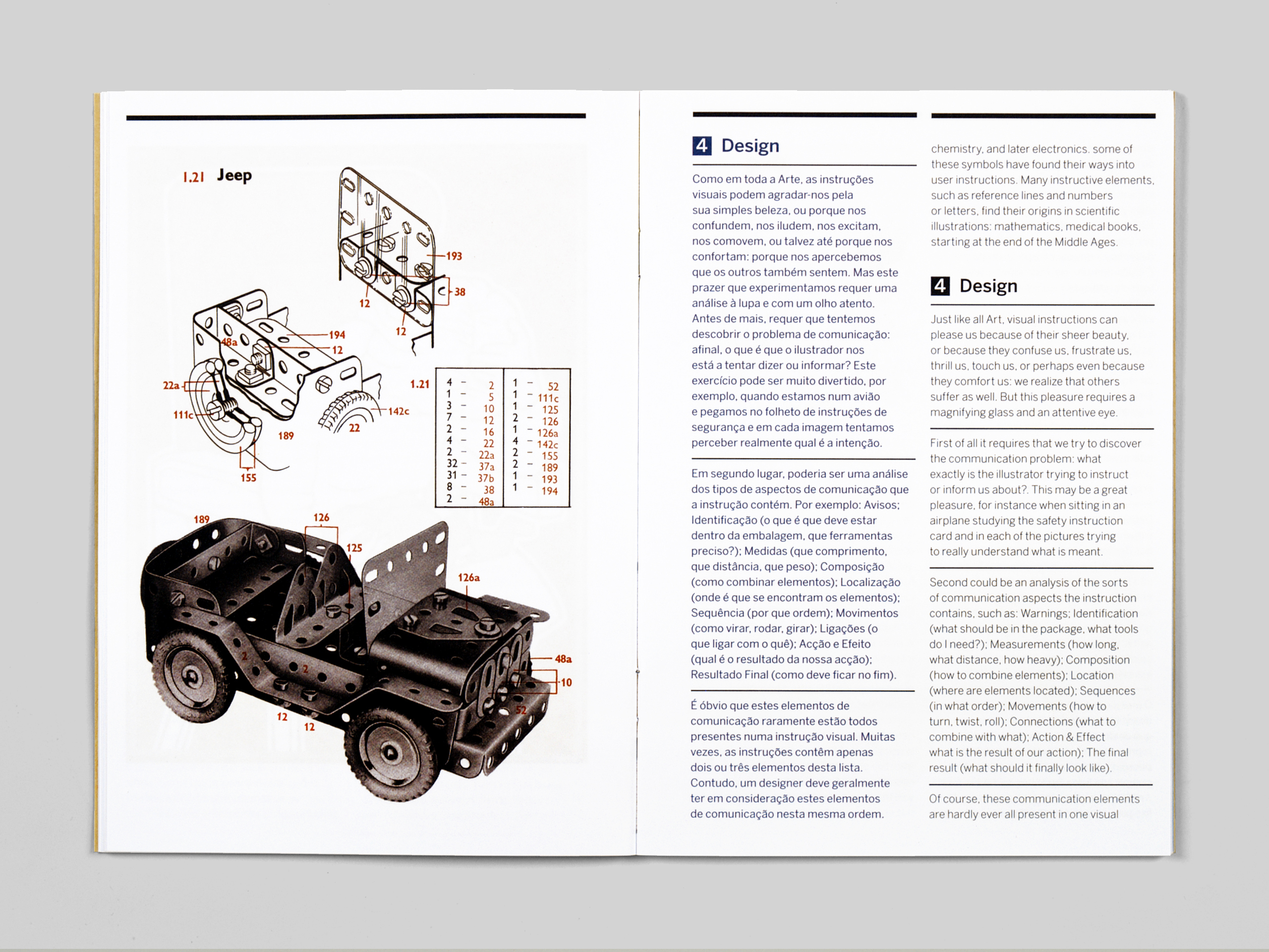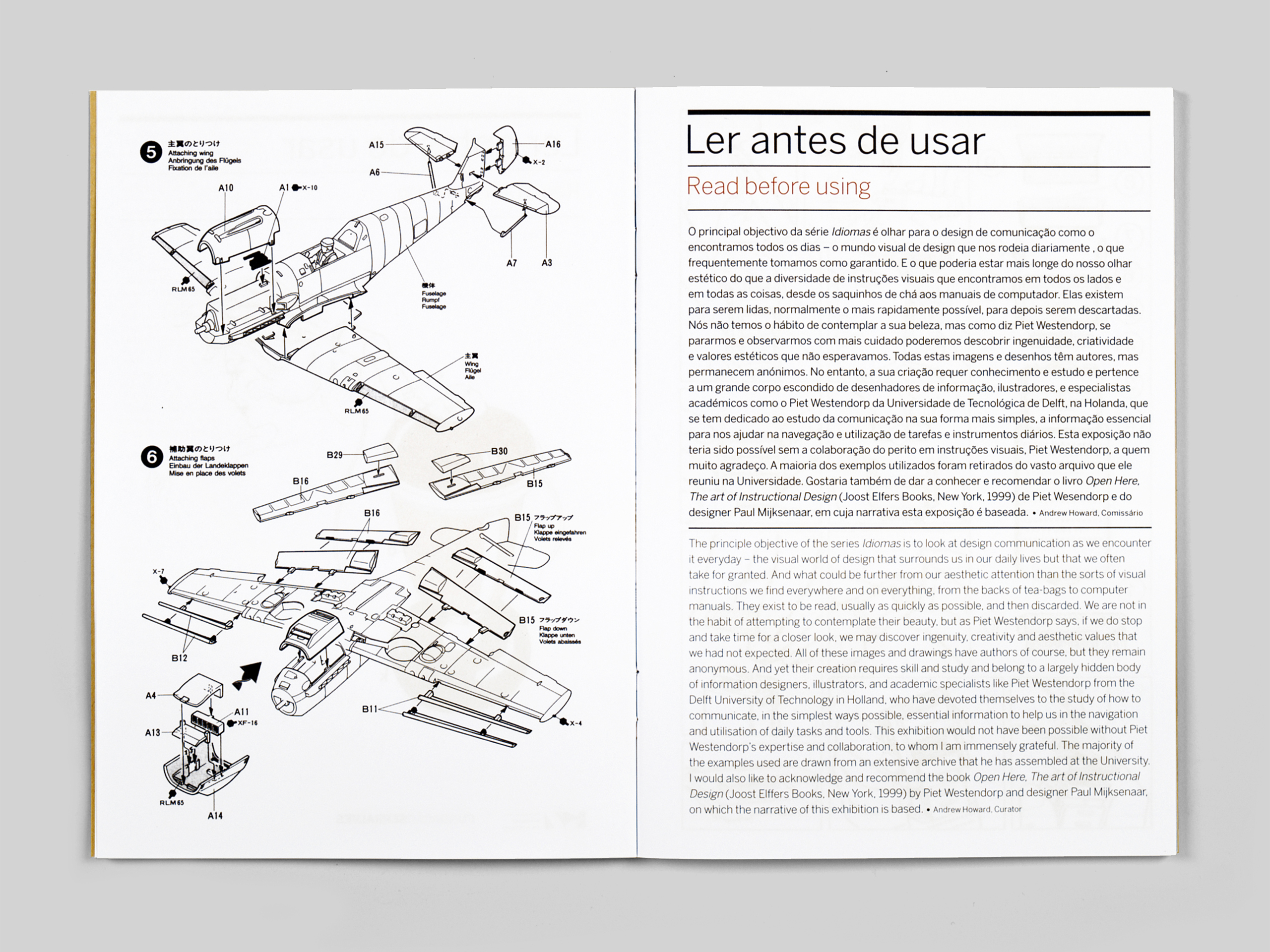 The 2nd exhibition, Read Before Using / Ler Antes de Usar (June 2006), explores the world of visual instructions. With consultant collaboration from Piet Westendorp from the Delft University of Technology, Netherlands, the exhibition draws its inspiration from the book 'Open Here' by Paul Mijksenaar and Piet Westendorp and makes extensive use of the University archive.