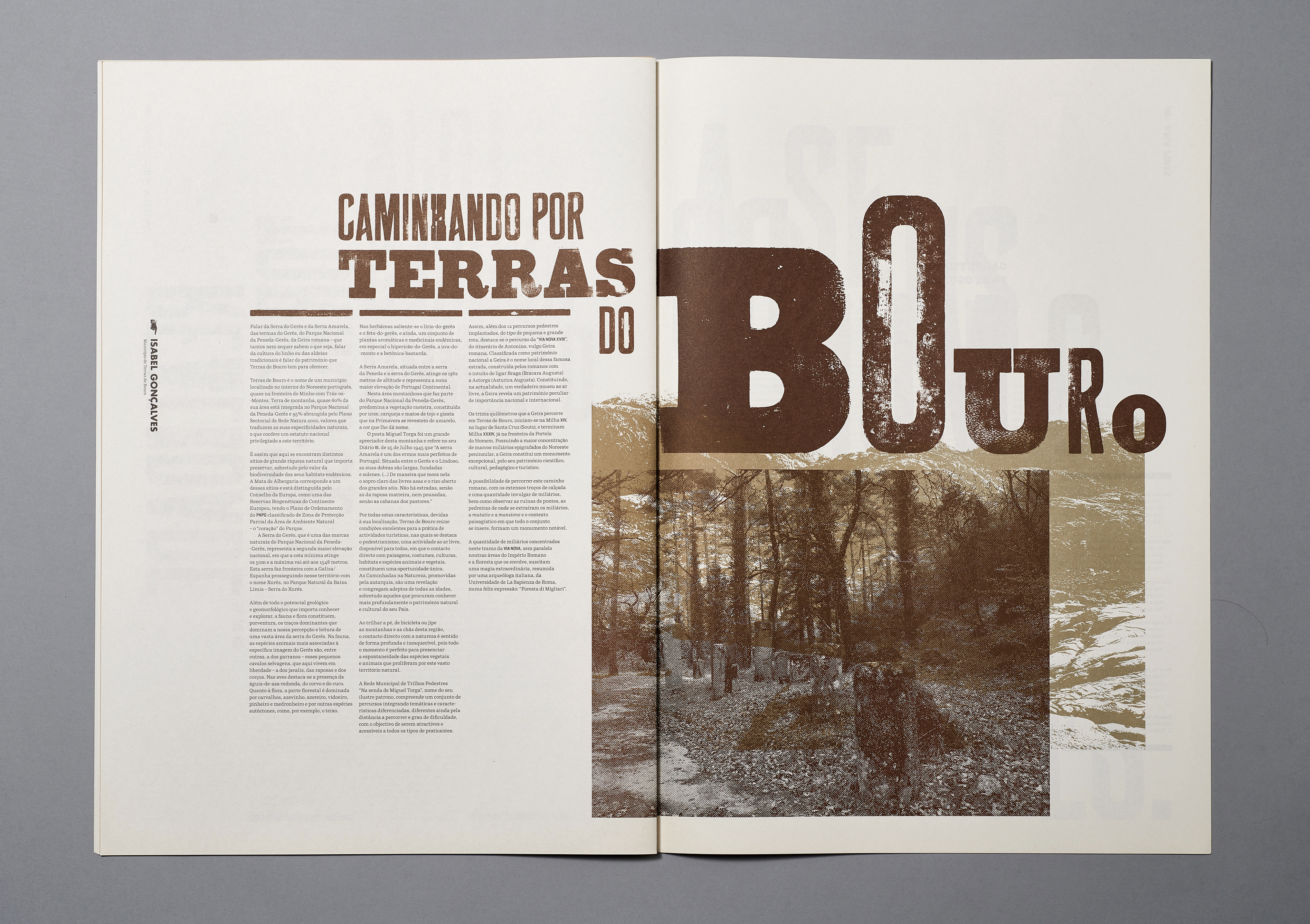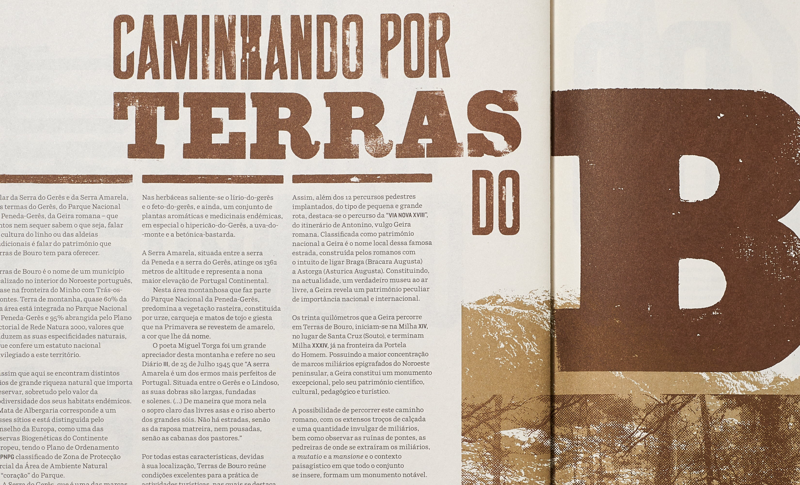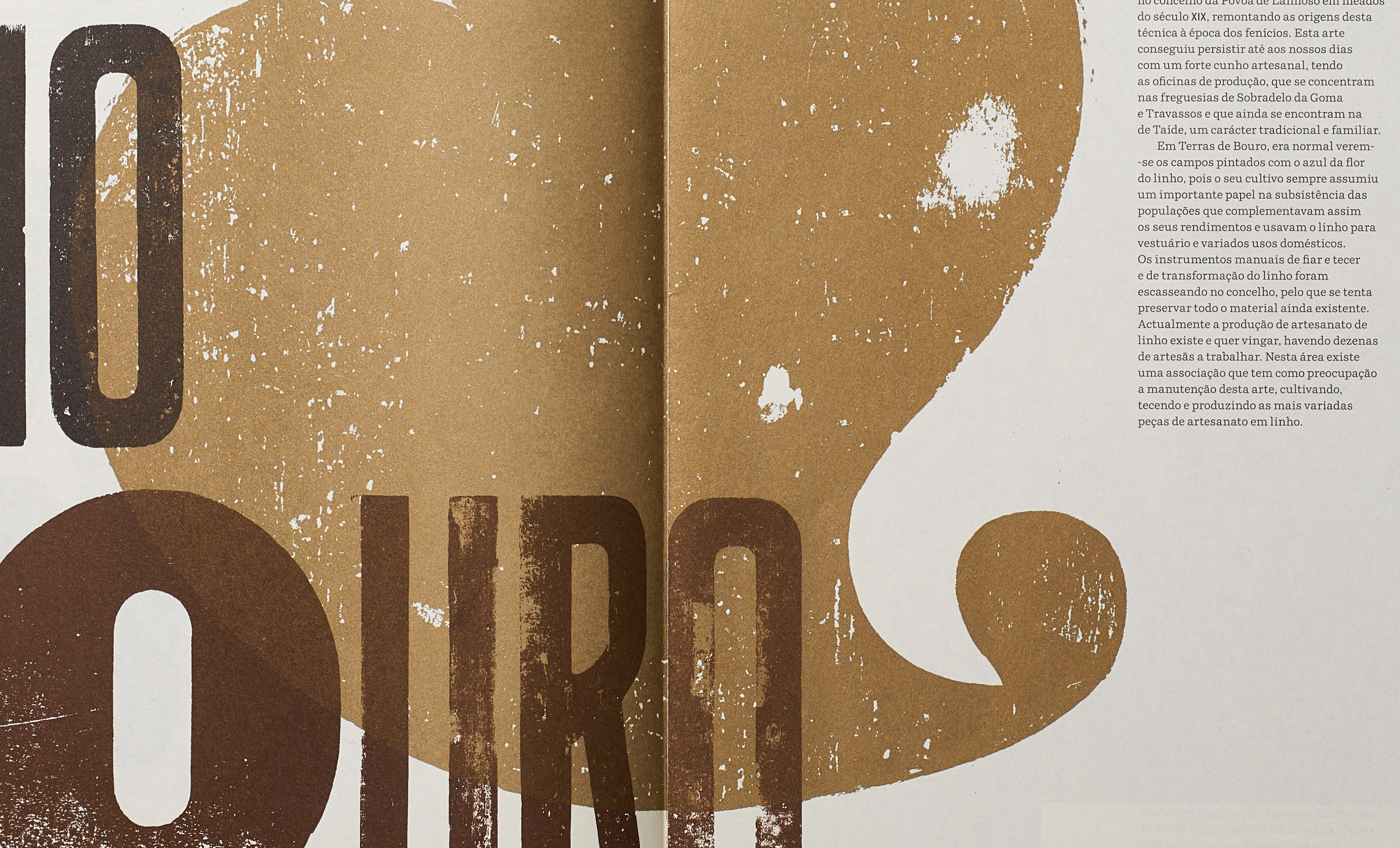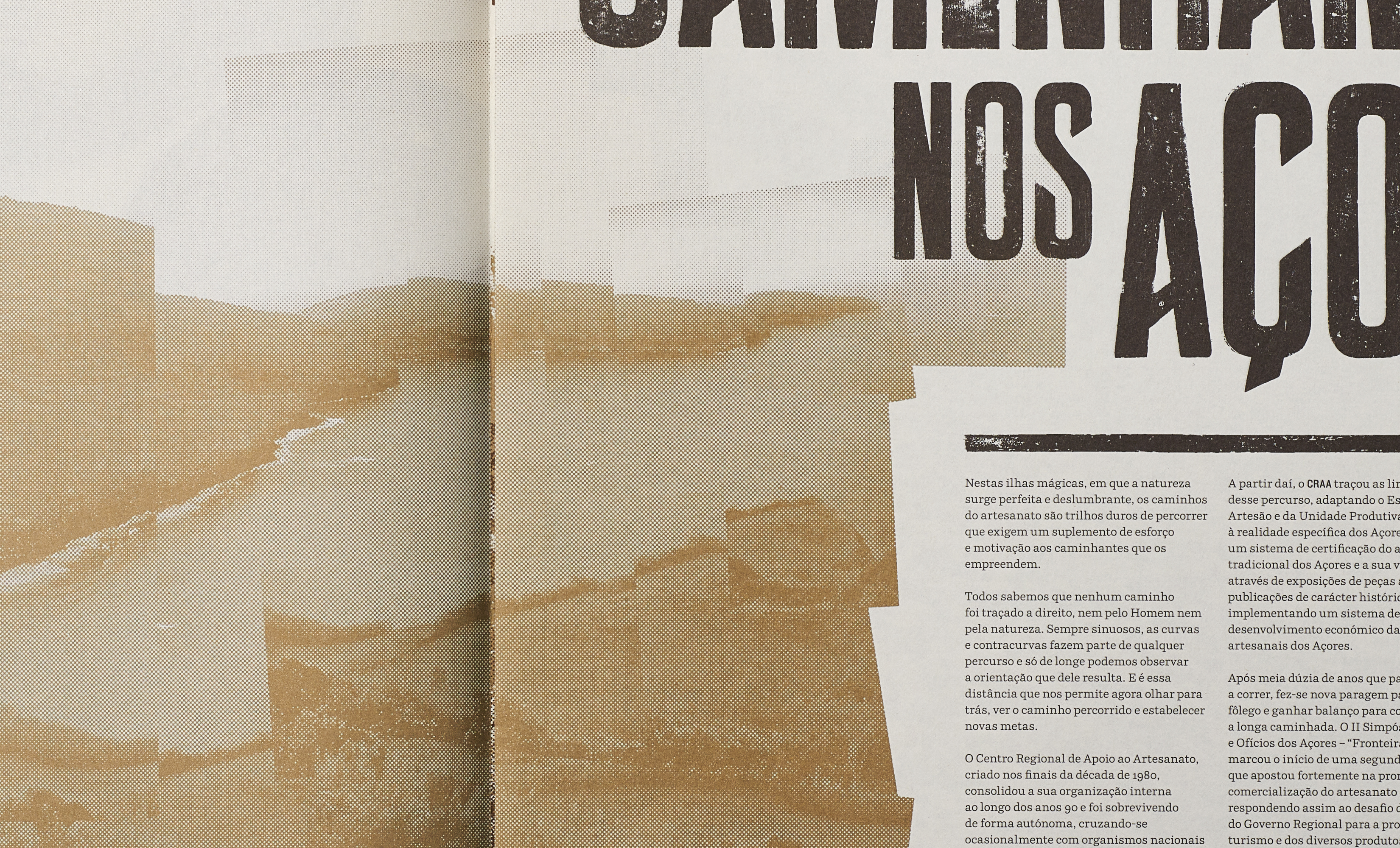Considering the historic overview which this issue presents, we considered a newspaper format a most appropriate form; one which allowed us to handle large amounts of text in relation to a small amount of images. Always with craft in mind, and because newspapers are largely typographic compositions, we decided to explore the tradition of printed type. We visited the Museu da Imprensa (Press Museum) – to whom we would like to express our gratitude – in search of type examples from an era in which the form and use of type retained a tactile expression. We found what we were looking for and made original hand-inked prints on a manual press using large wooden type. These were subsequently scanned and we have used them for the titles and subtitles of this issue. Special attention was also made to the materials used. Although the design is visually expansive we have restricted both the colour palette and the sophistication of the paper and card is order to match the utilitarian nature of the publication.